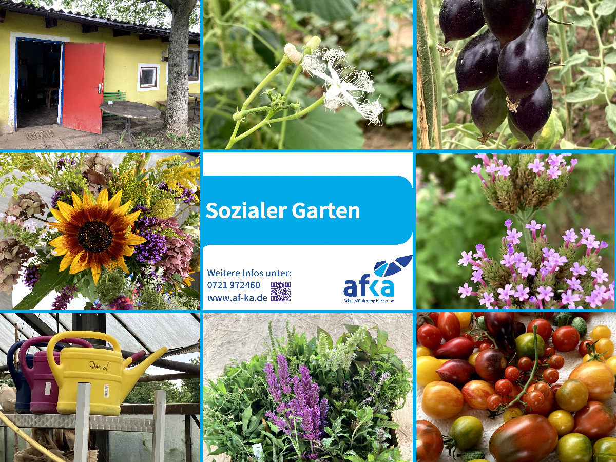 Seit 2009 gibt es den Sozialen Garten in Karlsruhe. Er bietet geförderte Beschäftigung für rund 30 langzeitarbeitslose Menschen auf dem Gelände einer ehemaligen Gärtnerei in Wolfartsweier. Das ökologisch angebaute Obst und Gemüse des Gartens kommt sozialen Einrichtungen zugute.