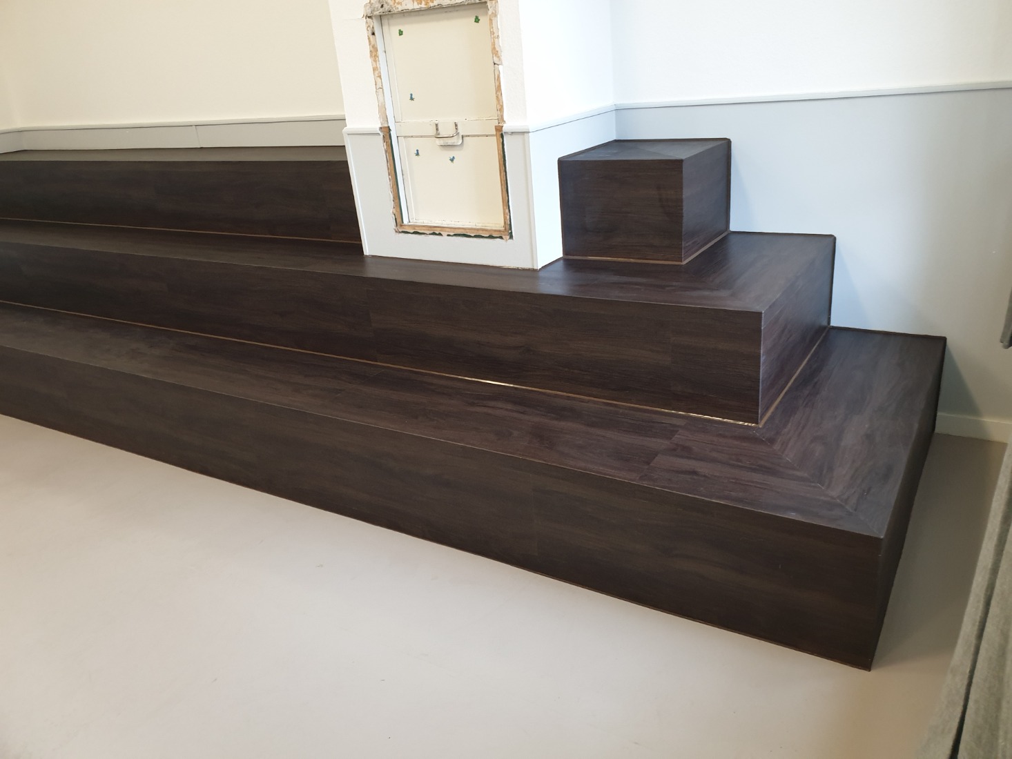 Im Anschluss fertigte das Team das Podest und baute es mit viel handwerklichem Geschick präzise in den Raum ein. Das Ergebnis kann sich sehen lassen: Eine stabile, funktionale und ästhetische Lösung, die perfekt auf die Bedürfnisse des Auftraggebers zugeschnitten ist.